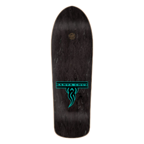 The Santa Cruz Skateboards Dressen Tribal Reissue 9.9″ x 31.4″ deck features legendary Santa Cruz Eric Dressen Tribal artwork on a brown stain deck bottom with a black stain deck top on his OG reissue shape with an adjustable wheelbase of 14.25″ – 14.75″.